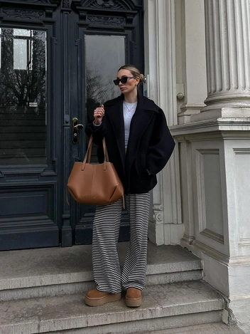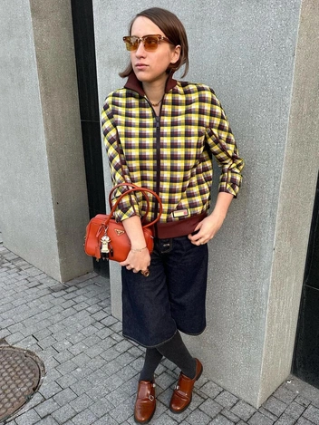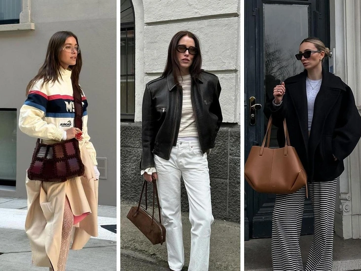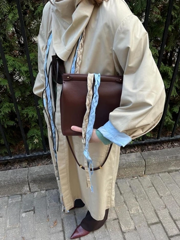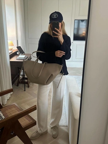 Самый желанный аксессуар сезона — сумка Cyme от бренда Polène. Она представлена в двух вариантах: мини и макси. По форме напоминает сумку-тоут с двумя вариантами ручек, чтобы носить ее как на плече, так и в руке. Бренд специализируется на базовых цветах, но самая популярная Cyme среди инфлюенсеров — рыжевато-коричневая. Эта модель пользуется успехом, потому что она универсальна и подойдет под любой образ: от спортивного костюма до аутфита на свидание. Кстати, главная ее фишка — можно менять форму: по бокам есть магнитные кнопки, которые позволяют носить сумку в вытянутой форме или убрать концы во внутрь и создать совсем другой дизайн.