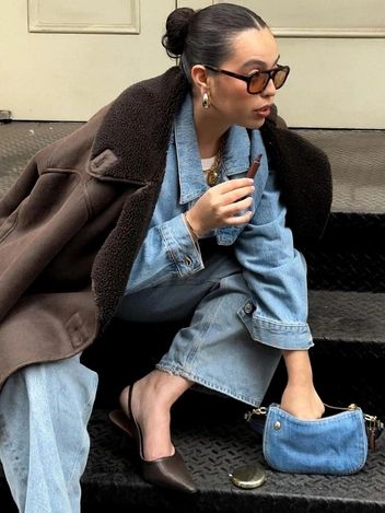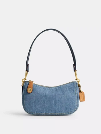 Маленькая джинсовая сумка-багет от Coach — один из главных атрибутов зумеров, которые ценят переработанные материалы и старые тренды. Эта модель вдохновлена дизайном 80-х: денимовым бумом, который вернулся на подиум в наше время. Не самый базовый вариант для миллениалов, но современные девушки в восторге от аксессуара. Он отлично справляется с задачей акцентировать внимание на образе и быть ближе к модной культуре родителей: то, что в этом возрасте носили они, сейчас носит новое поколение. В Swinger bag 20 всю жизнь поместить нельзя, но телефон, наушники и картхолдер точно поместятся (читайте также: Самые модные купальники на лето 2024 — яркие, с блеском и слитные).