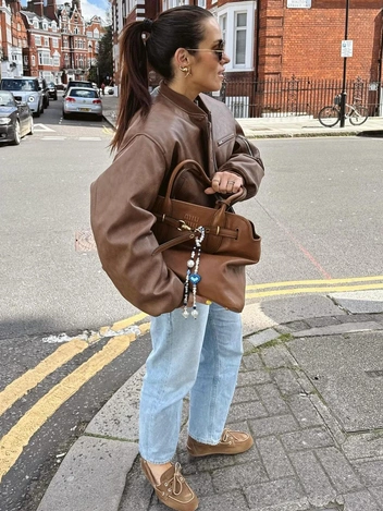 Сумка-тоут, как и большинство трендовых вариантов у икон стиля, повторяет популярную тему винтажа, но с современными нотками. Ее главная задача — уместить как можно больше всего. В сети вы найдете множество фотографий модниц, которые демонстрируют содержимое своих Aventure: от одежды до упаковок хлопьев. Сумка Гермионы Грейнджер в зумерском мире, с которой точно не пропадешь ни на прогулке, ни в путешествии. Обязательный атрибуты у обладательниц этой модели — брелоки, платки и все, что будет наделять аксессуар индивидуальностью: можно даже повесить очки или завязать наушники.