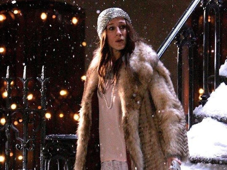 Героиню всегда критиковали за то, что она не умела дружить, но именно на встречу к Миранде она выбегает в растянутой пижаме, натянув на голову серебристую шапку, накинув жемчужную нить и самую желанную шубу тогда и сейчас — винтажную, выкупленную еще в начале сериале за 200 долларов.