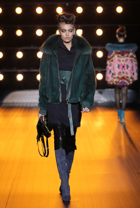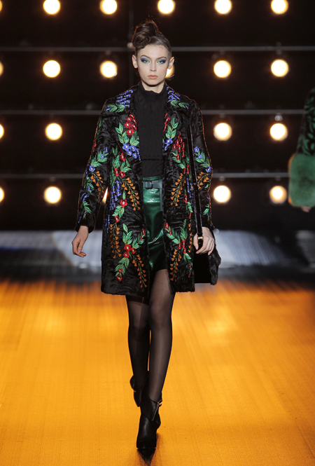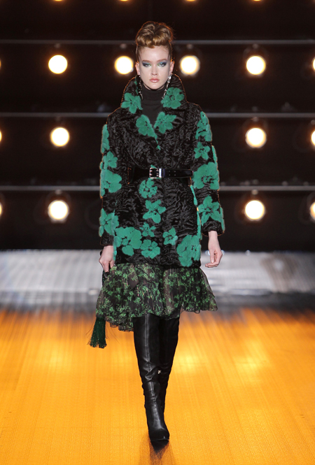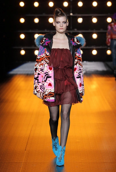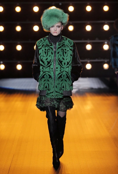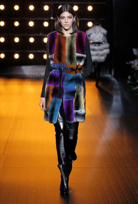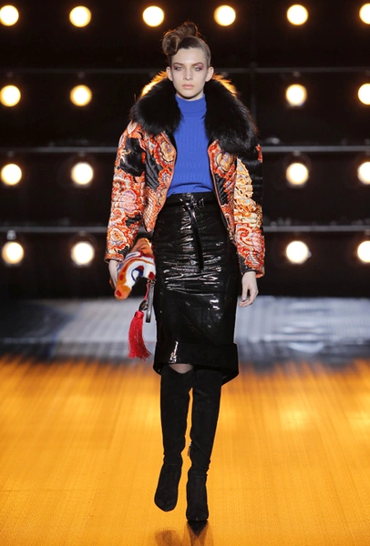 Все в том же пресс-релизе сказано, что в коллекции есть «спортивные образы», представленные парками, длинными жилетами и короткими пальто. Кроме них, имеются и «вечерние образы» — длинные двубортные пальто, бомберы, а также куртки и жилеты. Все это меховое великолепие украшается вышивкой в форме балканских роз, меховой «интарсией» — переплетениями 12 оттенков североамериканской норки и «импровизацией ярких красок» в духе американского художника Кита Харинга.