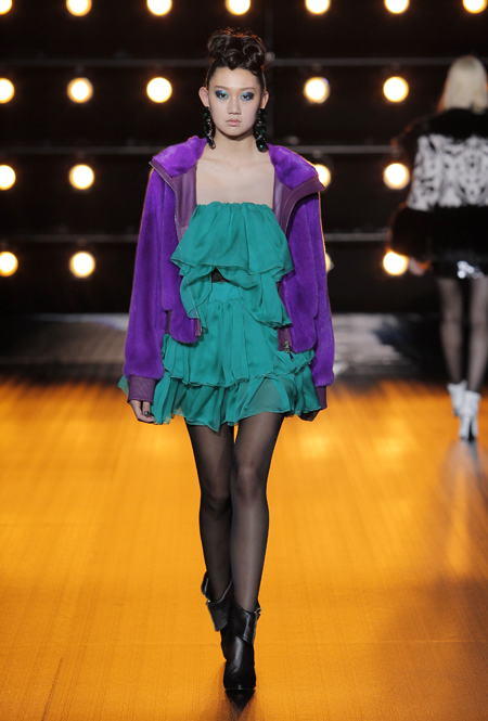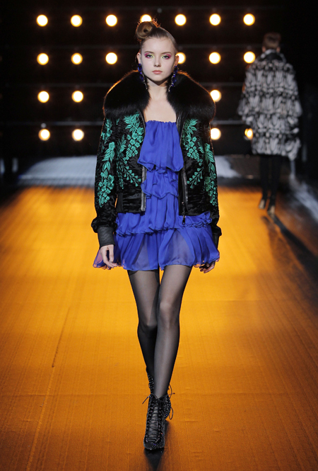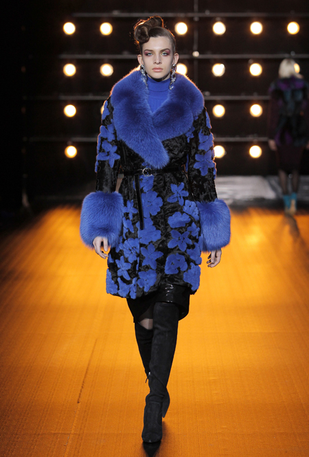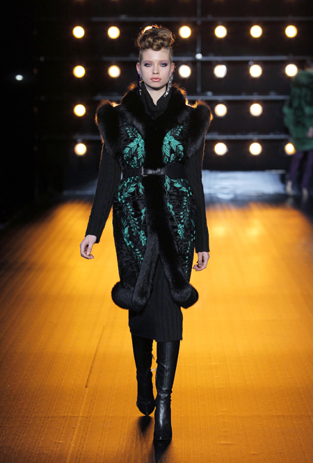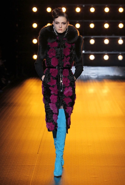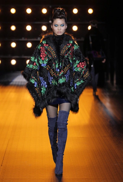 В новой коллекции, как гласит пресс-релиз, «как никогда чувствуется вдохновение русской культурой», а сама она — «воплощение образа современной аристократической женщины». Понятно, почему: львиная доля клиенток бренда — обитательницы постсоветского пространства, для которых разноцветные шубы, выполненные в сложных техниках, — лучшее украшение в сезон холодов.