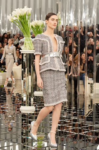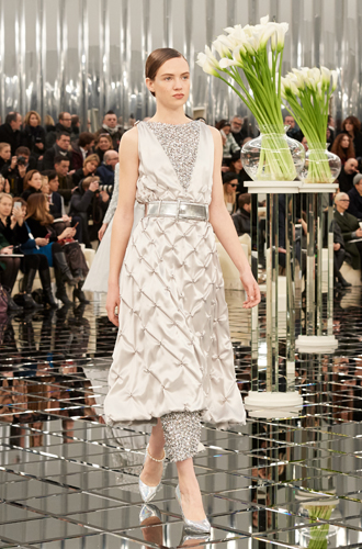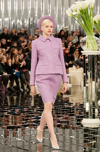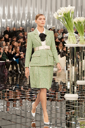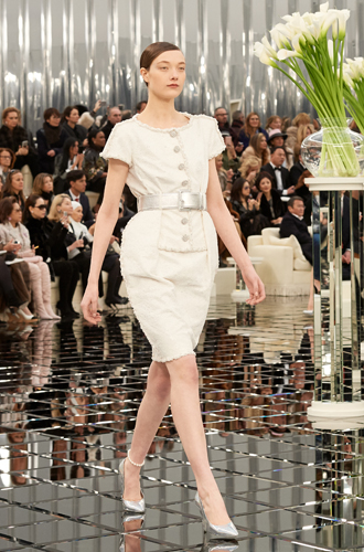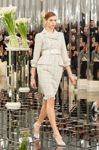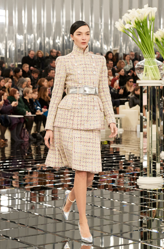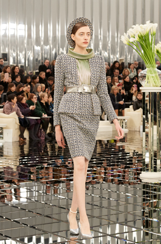 Впрочем, 20-е – это гораздо больше, чем джаз, фокстрот и нескончаемые вечеринки. Лагерфельд сумел отдать дань и авангардному искусству, которое в те годы переживало эпоху расцвета. Необычные силуэты дневных платьев и твидовых костюмов – плавный переход от не сильно зауженной и чуть завышенной талии к расширенной линии бедер – это аллюзия на творение швейцарского скульптора Альберто Джакометти «Женщина-ложка», увидевшее свет в 1927 году. «Рулевой» Chanel полагает, что такой силуэт смотрится выигрышно, так как визуально удлиняет ноги. Кстати, те самые шляпки-«нимбы» ─ тоже дань моде 20-х, но уже повседневной – похожие головные уборы девушки в те годы носили летом.
