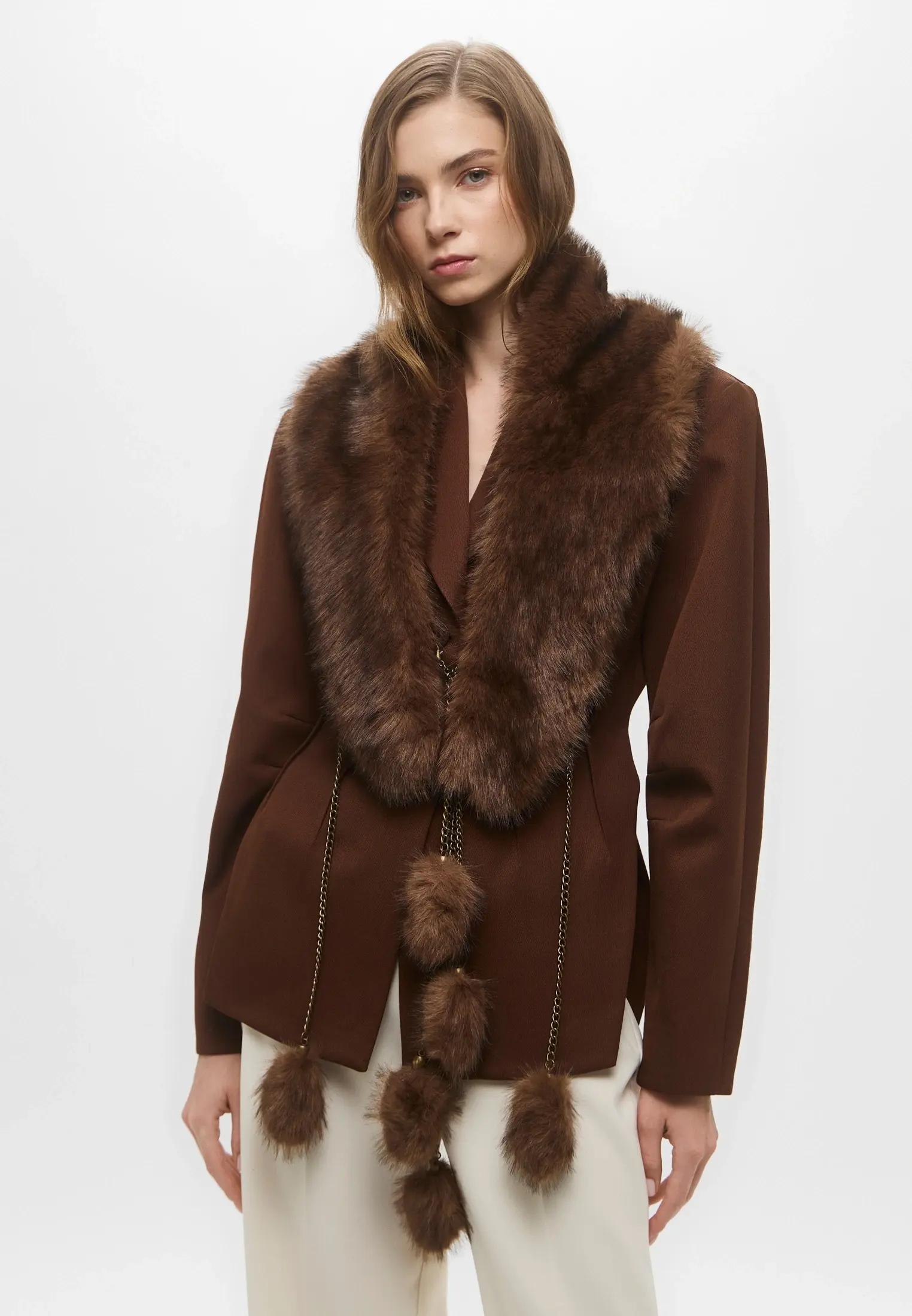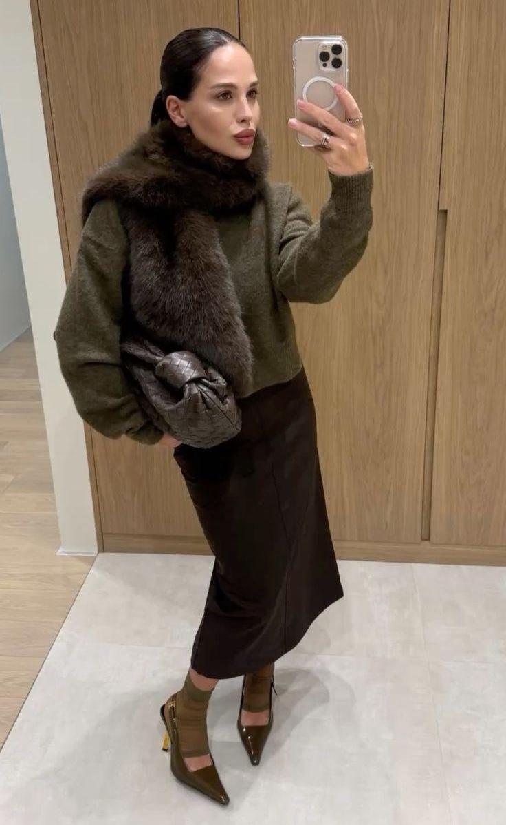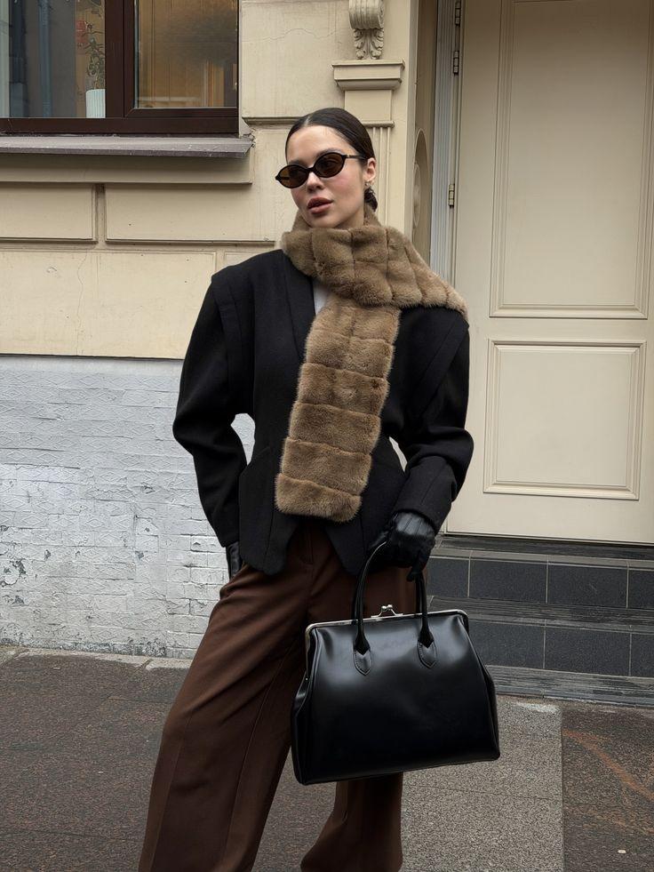 Смешение фактур: для модных экспериментов — носите меховую горжетку с кожаными аксессуарами: перчатками, ремнями и макси-сумками. Такой микс сразу придаст образу актуальной архитектурности и легкого драматизма, а фактурный контраст текстур всегда смотрится свежо, современно и дорого. Особенно хорошо этот прием работает с черными и насыщенными коричневыми оттенками — когда каждая деталь максимально раскрывает характер аутфита.