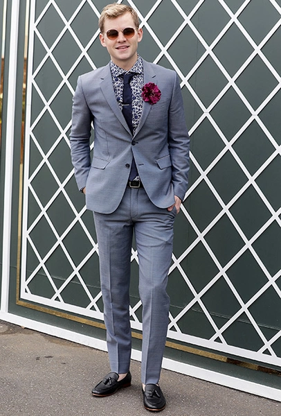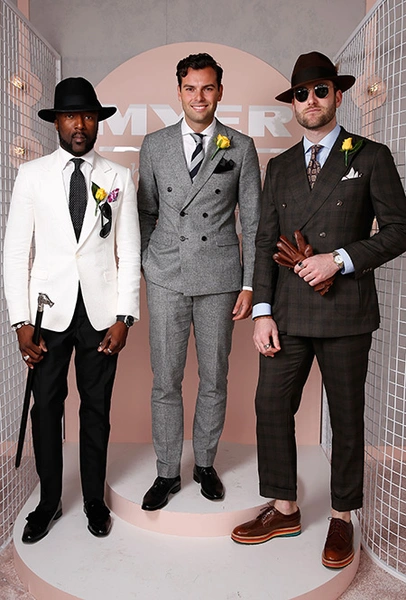 Что касается мужчин, то правила тут как всегда чуть более консервативные. Однако в этом году было сделано существенное послабление дресс-кода: джентльменам теперь можно появиться в обуви без носков. Как и следовало ожидать, Melbourne Cup Carnival тут же засверкал мужскими лодыжками в мокасинах, лоферах и слиперах (не путайте со слипонами — кедами без шнурков).