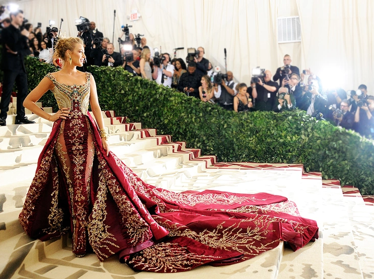 Соревнование за самое дорогое платье Met Gala безоговорочно выигрывает Блейк Лайвли. Актриса и звезда сериала «Сплетница» (Gossip Girl) предстала в платье от Донателлы Версаче, на создание которого ушло больше 600 часов работы — именно столько подол украшали золотой вышивкой, а корсаж расшивали полудрагоценными камнями.