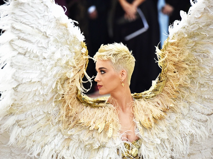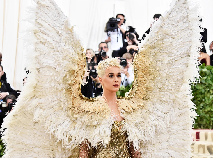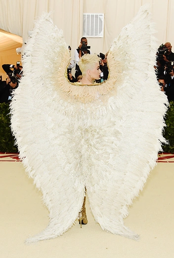 Автор наряда артистки — Донателла Версаче, которая в этот вечер примерила роль соведущей Бала. Реакция на платье Кэти была довольно неоднозначной. Самый популярный вопрос, который задавали в Сети, касался того, как певица будет передвигаться в них внутри Метрополитен-музея и сможет ли зайти в туалет. Ответ прост: крылья оказались съемной конструкцией. Оказавшись внутри, Кэти сменила их на «монашескую» накидку.