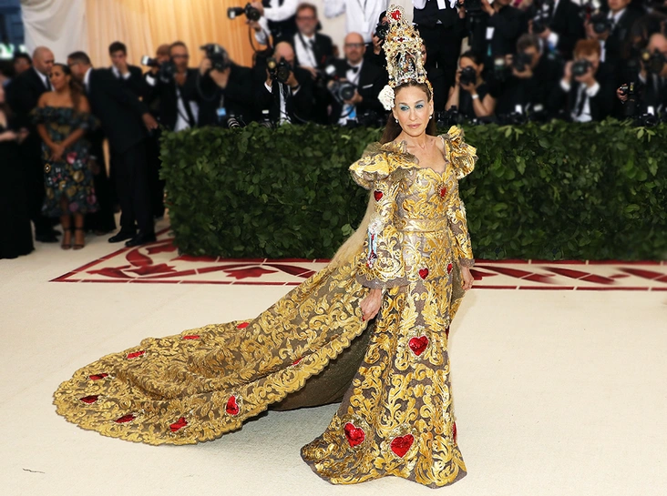 Их прогнозы не оправдались: платьев дизайнерского дуэта было не так много. Самое примечательное было у Сары Джессики Паркер: актриса появилась в золотистом туалете в барочных орнаментах со шлейфом, акцентами которого стали рубиновые сердца.