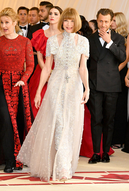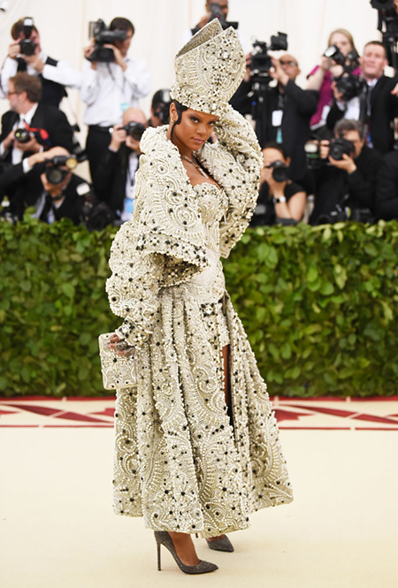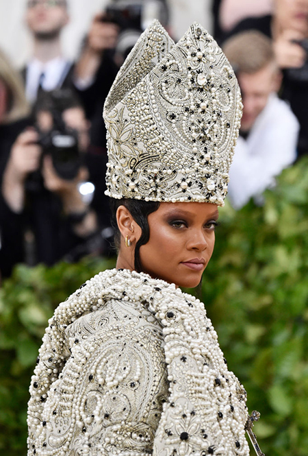 По традиции, торжественный вечер предваряет открытие выставки в Метрополитен-музее, тема которой в этом году – Heavenly Bodies: Fashion & The Catholic Imagination (связь моды и католицизма). Как и всегда, хозяйкой вечера и по совместительству ведущей Met Gala 2018 стала Анна Винтур. Соведущими в этот вечер были Амаль Клуни (для которой этот бал стал всего вторым), Донателла Версаче и главная законодательница моды 2017 года Рианна.