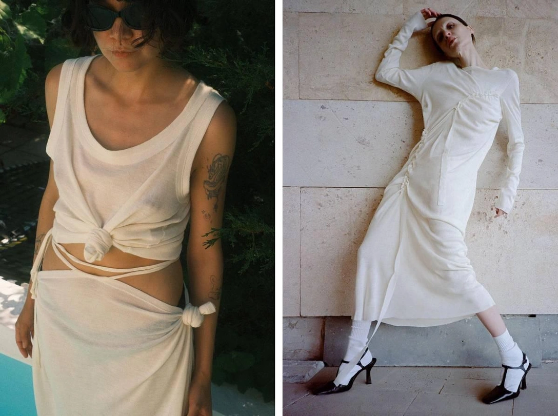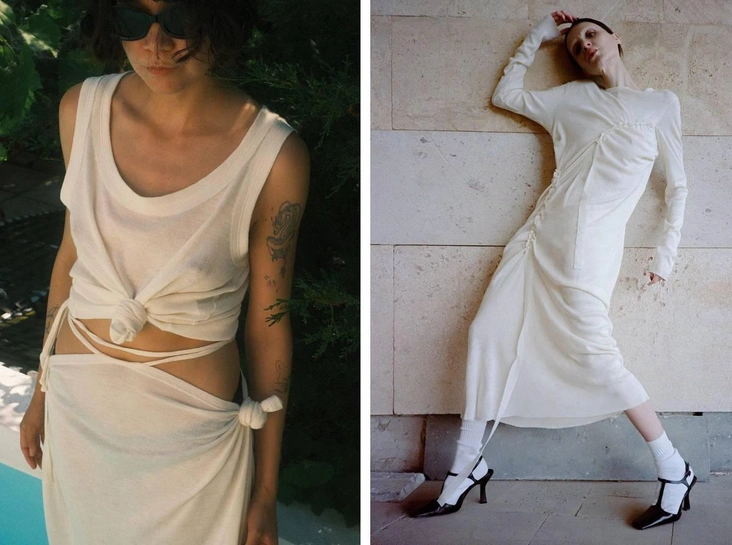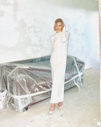 Бренд Svoya мы запустили с мужем в 2020 году. Изначально с фокусом на ответственное производство, который мы сохраняем и до сих пор. Мы делаем моду по предзаказу. Это значит, что мы не производим вещей больше, чем нужно нашим покупателям. А в самом производстве мы используем только стоковые ткани, которые остаются невостребованными на складах крупных брендов, минимизируем количество фурнитуры. Такой подход позволяет нам, с одной стороны, сделать каждое изделие чуточку «зеленее», с другой — рассказать аудитории о медленном потреблении, когда вещь попадает к тебе в гардероб не со склада в Китае, а из студии бренда, где его отшивали индивидуально.
