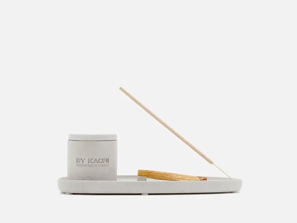 В набор входит: аромасвеча, палочки Пало Санто, палочки благовония, гипсовая подставка для свечи, гипсовая подставка для палочки Пало Санто.