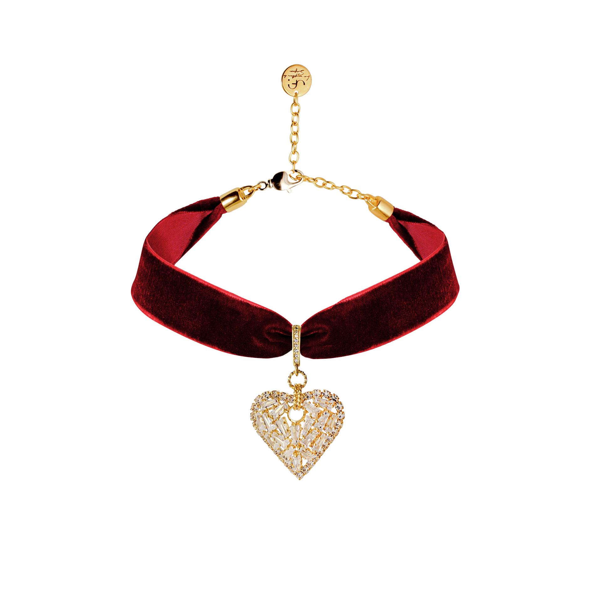 Если в День Святого Валентина хочется побыть в роли принцессы Дианы, то рекомендуем посмотреть в сторону этого бархатного чокера. Леди Ди точно выбрала бы его за россыпь камней и мягкость ткани, которая позволит носить украшение весь вечер.