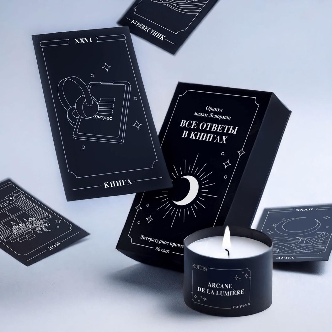 Знали ли вы, что 14 февраля отмечается не только День всех вклюбленных, но еще и Международный день книгодарения? Если ваша вторая половинка любит читать (а может, еще и гадать по книгам?), то в подарок ей можно преподнести оригинальный бокс, состоящий из колоды Марии Ленорман в литературном прочтении, свечу с ароматом Arcane de la Lumière и брендированные спички. Она точно оценит такой запоминающийся презент!