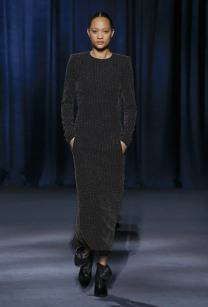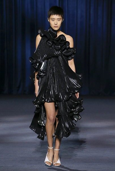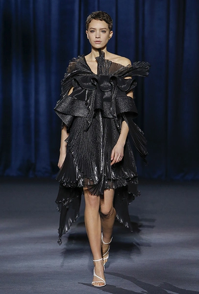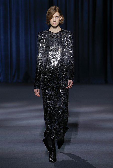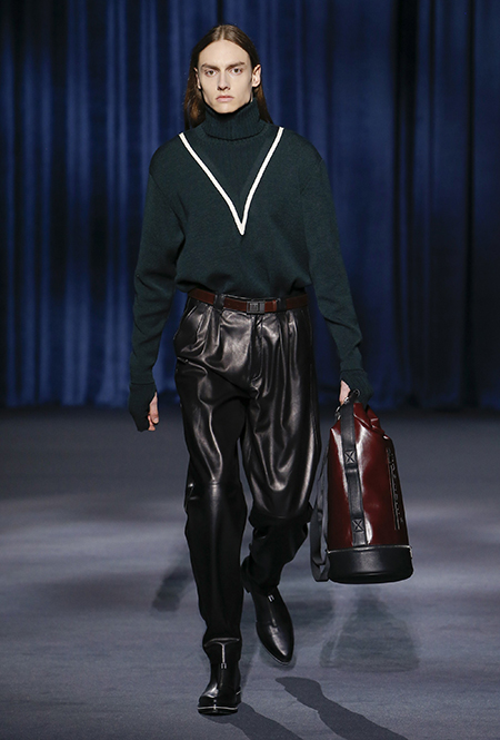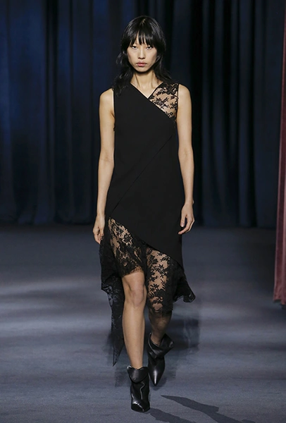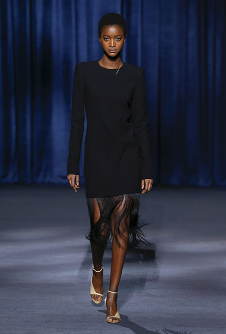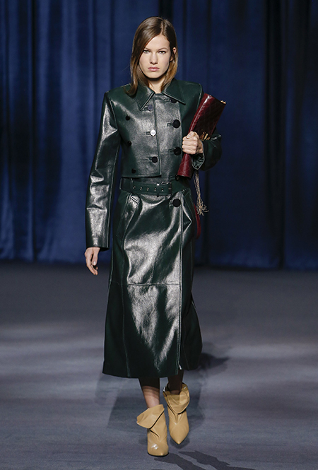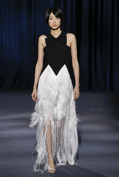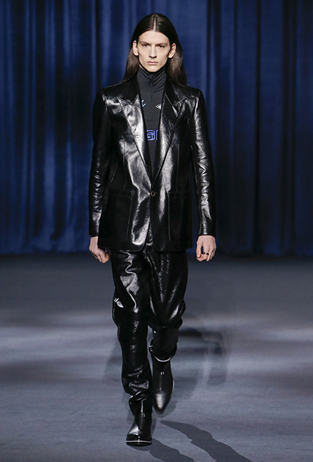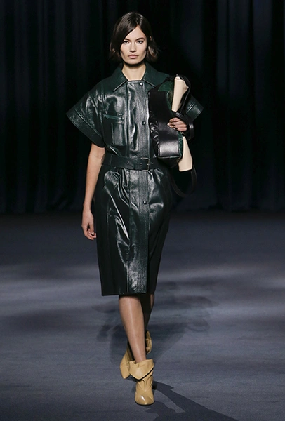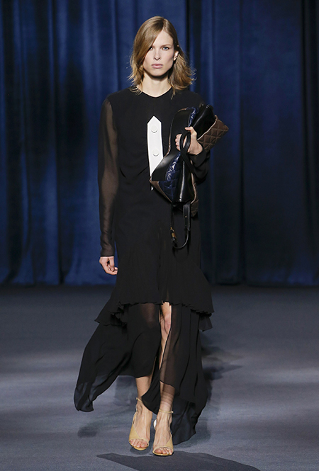 Кожи в коллекции тоже много. Жакеты, пальто, сапоги – все это, само собой, здесь есть. Но больше всего запоминается огромный кожаный бант, которым украшен лиф короткого коктейльного платья. Это вновь отсылает к теме «классики гламура» – то, с чем привыкли ассоциировать Givenchy. Вдобавок к наряду с бантом, здесь есть и блестящие серебристые туалеты в стиле 20-х годов, и платья с бахромой и вставками из черного кружева. Если не все, то, по крайней мере, часть из них мы наверняка увидим на красных дорожках – Givenchy любят знаменитости первого эшелона, и это тоже отличительный знак бренда.