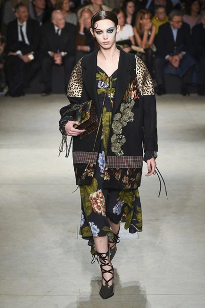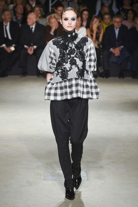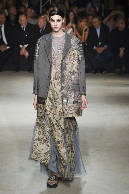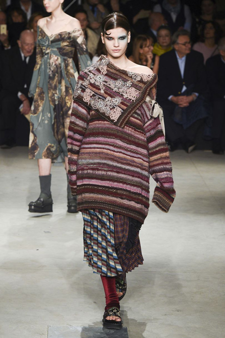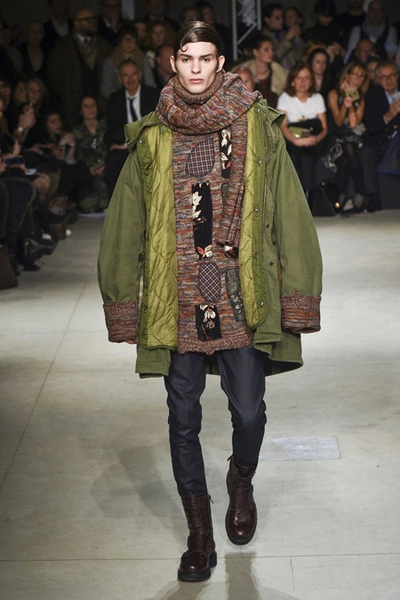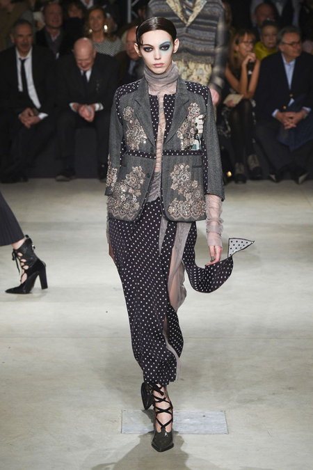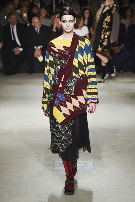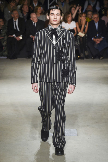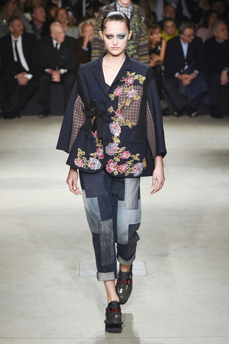 Что до одежды, то здесь Маррас сделал ставку на многослойность и эклектику. Например, плащ в крупную клетку он предлагает носить поверх блузы в крупный цветок и клетчатой юбки с завышенной талией. Из-под юбки при этом «выглядывает» подол кружевной подкладки. И так во всем: кружево с шерстью, полоска с клеткой, «леопард» с цветами (они здесь вообще в изобилии – как на женских, так и на мужских вещах) и предметы гардероба, будто сшитые из лоскутов. Их обладатель то ли не придает значения «правильным» сочетаниям, то ли нарочно таким образом «дерзит» моде, которая кажется ему чересчур высокомерной и конвенциональной.