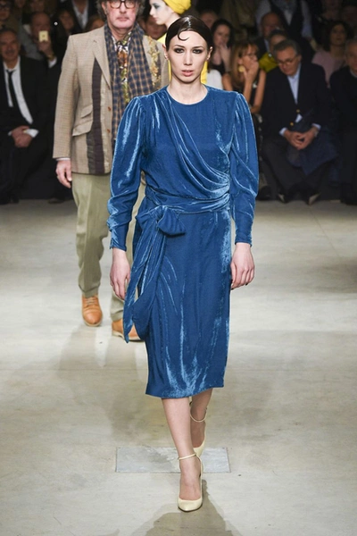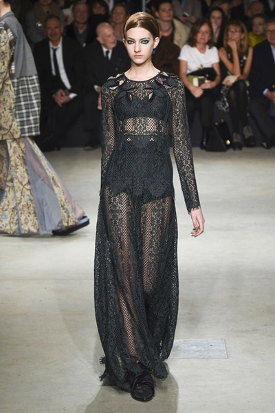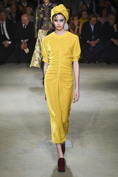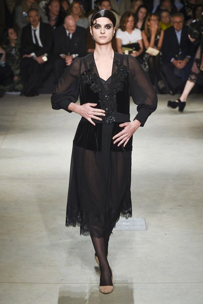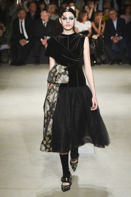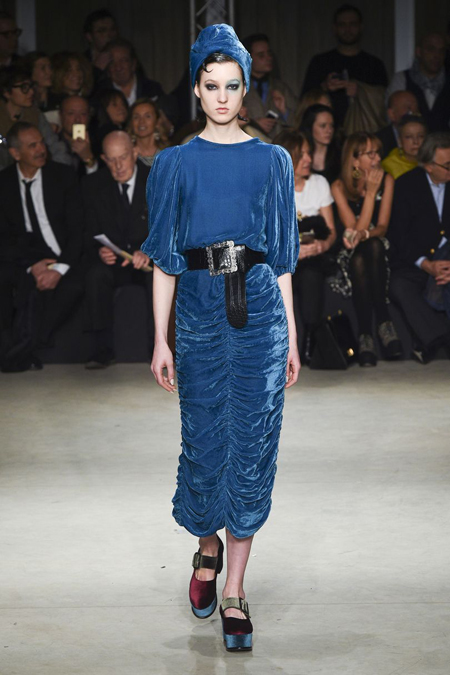 Отдохнуть от мелькания ярких, словно в калейдоскопе, картинок помогают редкие монохромные образы – длинные облегающие из синего и желтого бархата платья, дополненные тюрбанами в тон в духе 20-х годов, черные плиссированные наряды и роскошные полупрозрачные кружевные туалеты в пол.