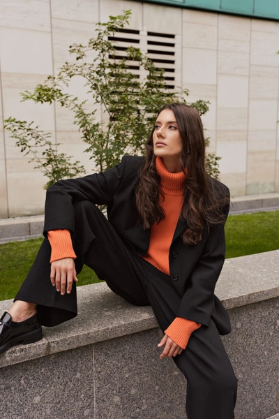 Дизайнеры WoollyWoo приготовили на осень уже узнаваемые теплые трикотажные свитеры с высоким воротом в новых цветах — коралловом, коричневом, двухцветном зеленом, выполненным в стиле колорблокинг, а также джемперы с круглым вырезом в ярком синем, базовом сером и бежевых тонах. В свой гардероб стоит добавить трикотажные платья и трендовые комплекты с юбкой макси. Образы в спокойной цветовой палитре, молочных и графитовых оттенках, подойдут для долгих прогулок по городу с чашкой горячего шоколада.