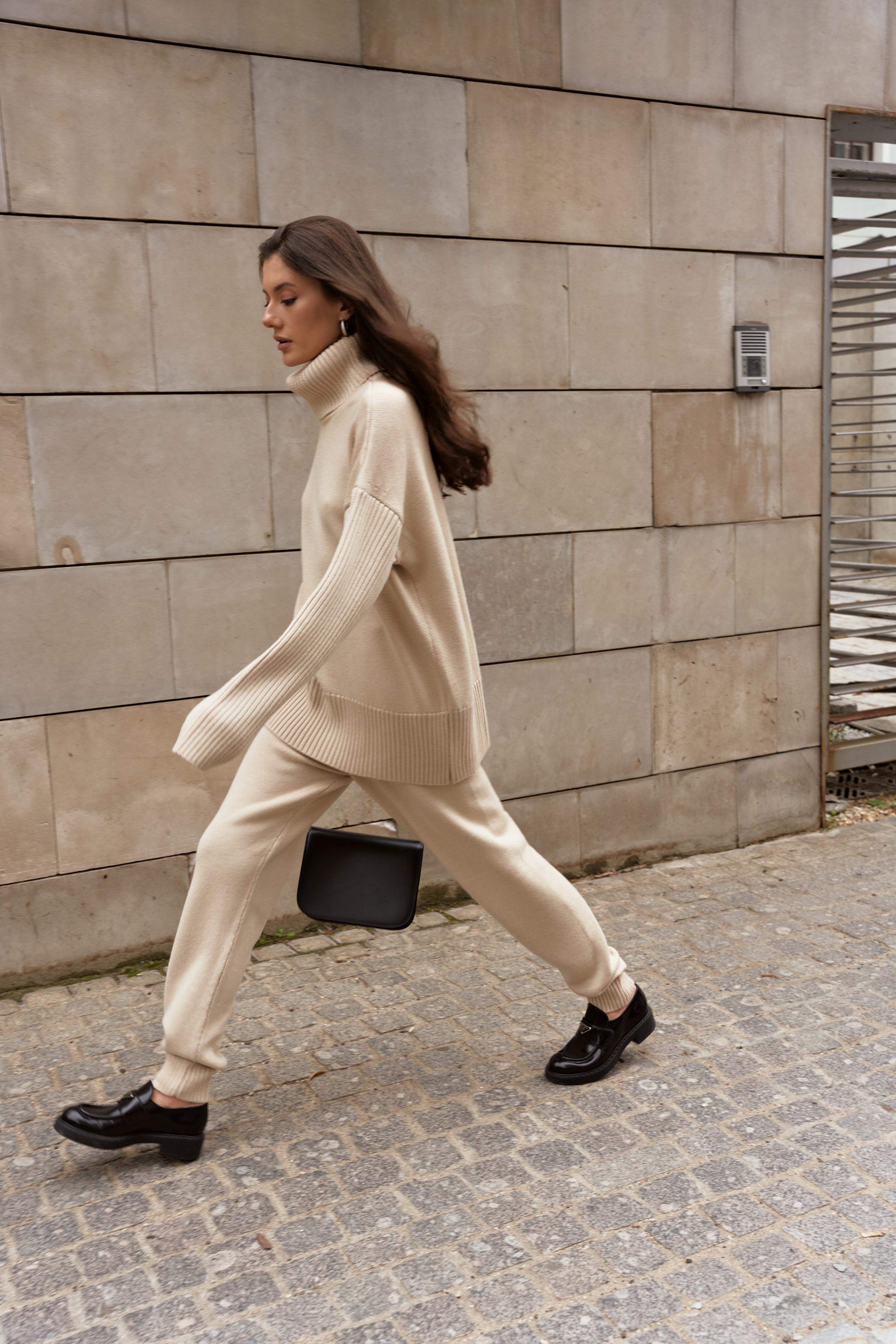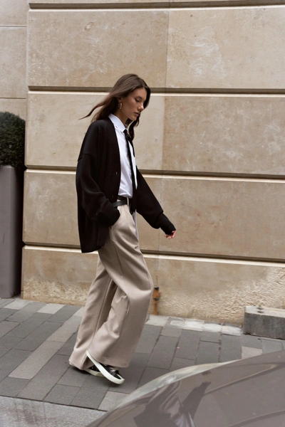 Бренд WoollyWoo подготовил осеннюю капсулу, в которой комфорт идет рука об руку с модой и стилем. Главная звезда коллекции — утепленные брючные костюмы трендового сейчас стиля old money. Они будут эффектно смотреться в компании романтичной блузы с крупным бантом или базовой футболки. Богатая цветовая палитра порадует тех, кто не готов прощаться с летними красками. К примеру, сет в оттенке «зеленое яблоко» прекрасно сочетается с традиционными для холодного времени года цветами: бежевым, серым, шоколадным, молочным.