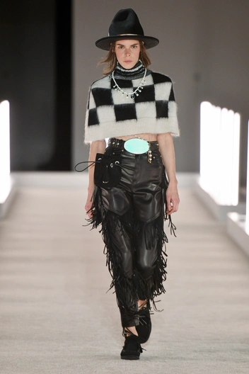 Несмотря на успех на киноэкране, еще до повального ажиотажа многие дизайнеры активно интегрировали шахматную клетку в свои коллекции. Так, Erdem добавил принт к романтичным образам, вдохновленным 30-ми годами. Кристофер Кейн освежил орнамент, выбрав треугольники вместо квадратов, и дополнил приталенное платье смелыми вырезами геометрических форм. А Palm Angels пересмотрели тенденцию в сторону ковбойского стиля и представил укороченное пончо с клеткой шахматной доске, создав кожаные брюки с бахромой и укороченное пончо.