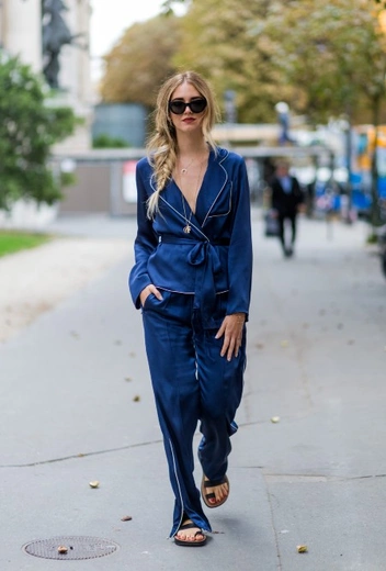 Несмотря на разнообразие принтов и материалов, пижамному луку все же понадобятся завершающие штрихи – такие, которые помогут вам выглядеть собранно, а не так, как будто вы только-только поднялись из кровати. К образу добавьте стильную обувь – это могут быть декорированные мюли или минималистичные босоножки на каблуке. Выбирайте трендовые flatforms (обувь на массивной подошве) или более изящные варианты. В общем, доработайте образ так, как обычно делаете это с повседневным костюмом.