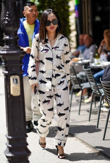 Несмотря на разнообразие принтов и материалов, пижамному луку все же понадобятся завершающие штрихи – такие, которые помогут вам выглядеть собранно, а не так, как будто вы только-только поднялись из кровати. К образу добавьте стильную обувь – это могут быть декорированные мюли или минималистичные босоножки на каблуке. Выбирайте трендовые flatforms (обувь на массивной подошве) или более изящные варианты. В общем, доработайте образ так, как обычно делаете это с повседневным костюмом.