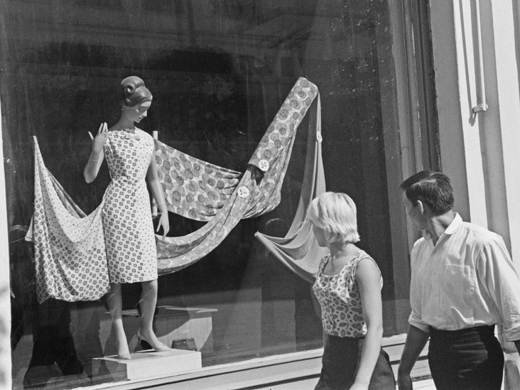 Самое первое и вполне логичное решение, которое напрашивается сразу же, — это поход в магазин. Однако не стоит забывать, что мы говорим про голодные до моды времена. Что это значит? А то, что в магазинах в это время были представлены однотипные модели одежды темных или тусклых оттенков. Все они были простого фасона без единого намека на индивидуальность.