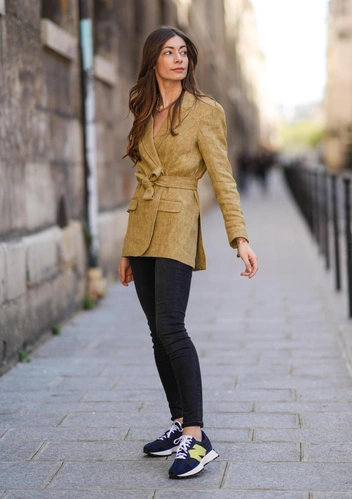Единственные образы, где скинни могут смотреться уместно, — образы с ботфортами или сапогами-трубами до колена. При таком раскладе рекомендуем выбирать джинсы с завышенной талией, который сделает ноги визуально длиннее. Они должны быть выполнены из плотного полуприлегающего денима (читайте также: Тест: выберите свой тип фигуры, а мы расскажем, какие джинсы вам не стоит носить).