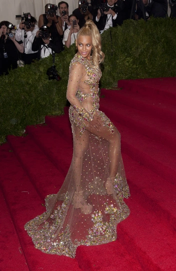 С герлз-бэнда Destiny's Child и до головокружительной сольной карьеры мода играла для певицы особо важную роль. За время выходов Бейонсе на ковровые дорожки самых престижных премий мы смогли увидеть на ней абсолютно все возможные фасоны «голых» платьев. Почти полностью прозрачные наряды, усыпанные стразами и перьями, эпатажные золотые и серебристые платья, смелые боди и образы с откровенными вырезами — Бейонсе никогда не даст заскучать.