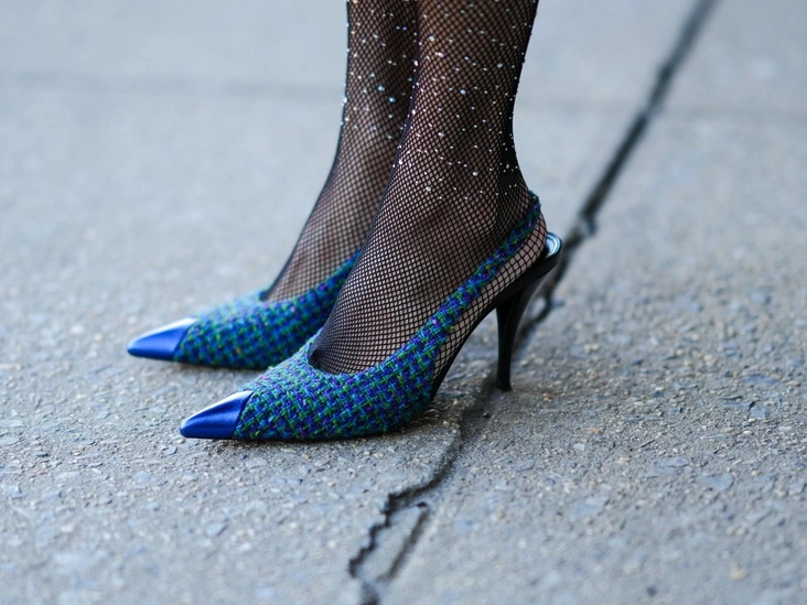 Колготки в сетку, с бантиками, стразами, вышивкой люрексом, камнями, бусинами — тренд, пришедший к нам из моды 90-х. Обувь под них должна быть однотонной или коррелирующей с идеей: если стразы есть на колготках, допустимо стилизовать их лаковыми ботильонами и туфлям с камнями. В будни носить такое не получится, а вот корпоративы и новогодние вечеринки заждались необычных образов с оригинальными колготками.