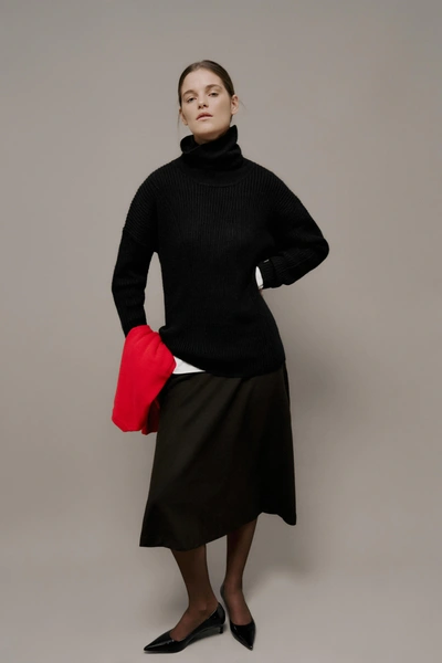 Модели новой коллекции можно сочетать друг с другом. На это же работает вариативность силуэтов (от прямого кроя до объемного) и рукавов (от рубашечного до реглана), а также цветовая палитра, где нейтральные оттенки (коричневый, бежевый, белый) разбавлены глубокими и яркими (зеленый, синий, красный). Собрать трикотажный тотал-лук помогают и вязаные аксессуары, которые вошли в коллекцию наряду с джемперами, свитерами, жакетами, юбками и платьями.