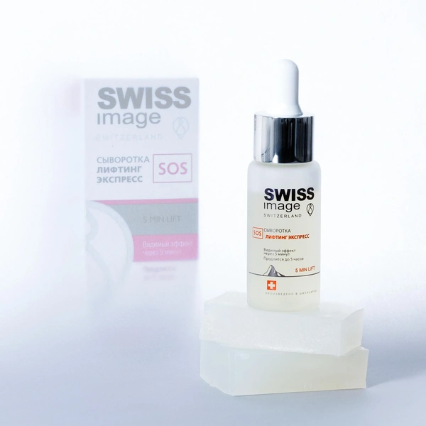 Биотехнологи швейцарского бренда Swiss image специально разработали сыворотку SOS для преображения кожи. После нанесения на лице образуется прозрачная невидимая пленка, которая подтягивает кожу, делает ее упругой и сияющей, а также скрывает часть морщинок. В состав сыворотки включены низкомолекулярные компоненты: гиалуронат натрия и сок стебля сорго. База сыворотки — талая вода альпийских ледников, благодаря чему достигается мгновенное и глубокое увлажнение кожи.