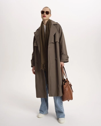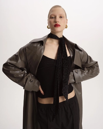 Весной можно смело сочетать все еще теплую верхнюю одежду с уже по-настоящему легкими ансамблями. Сеть офф-прайс магазинов Familia, например, предлагает надевать куртки-бомберы с легкими брюками, а кожаные тренчи — с топом с бантом.