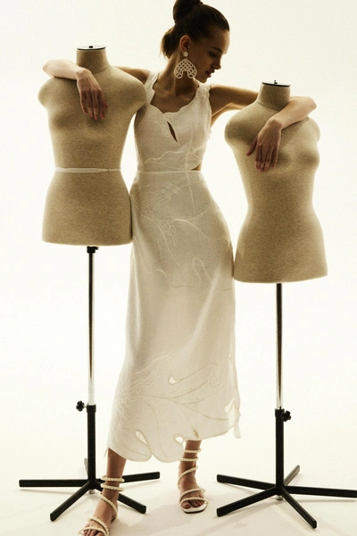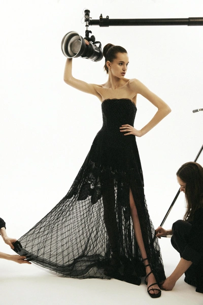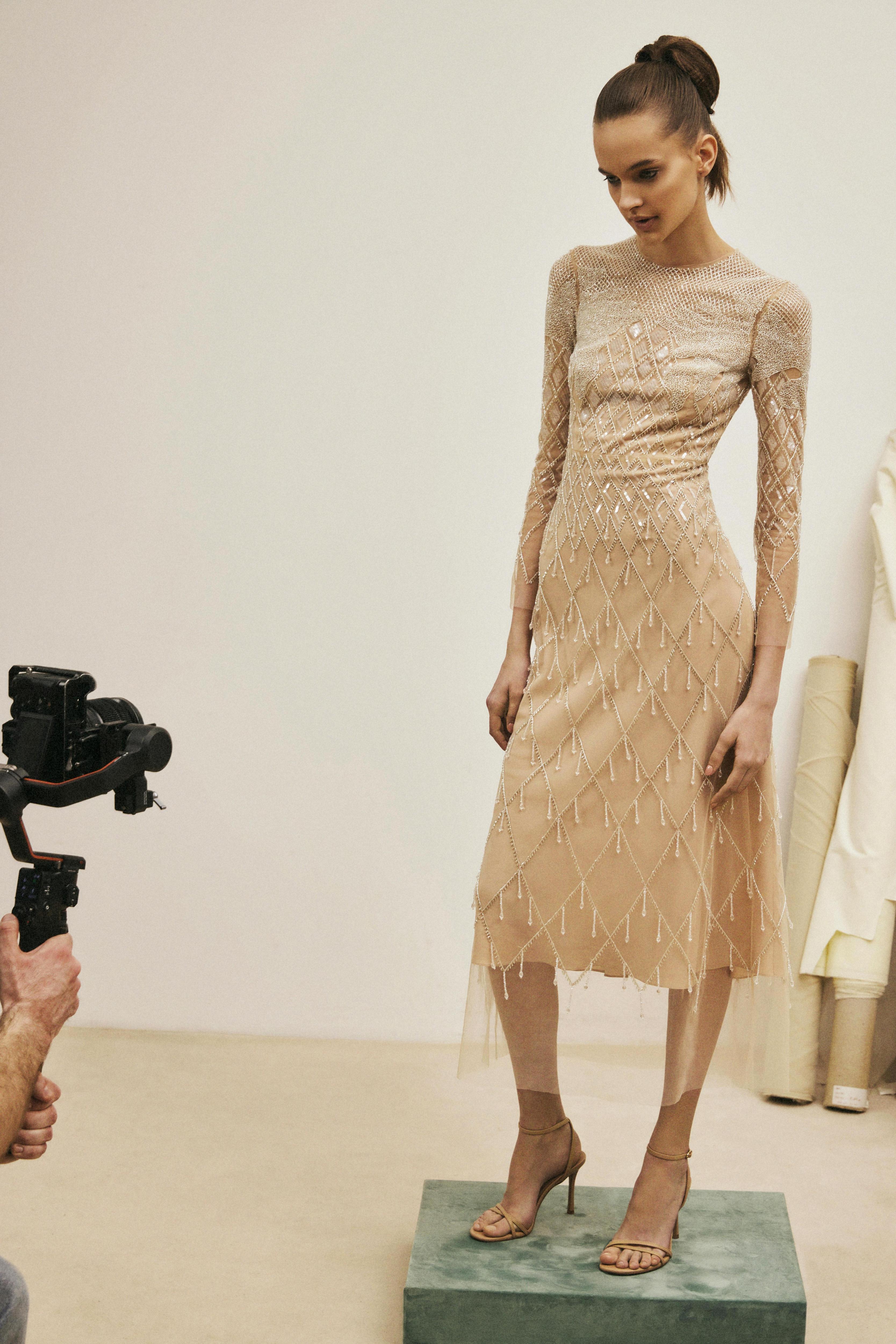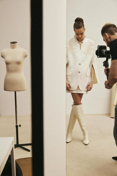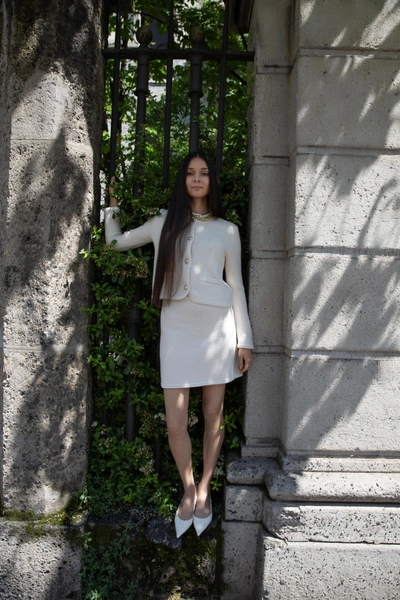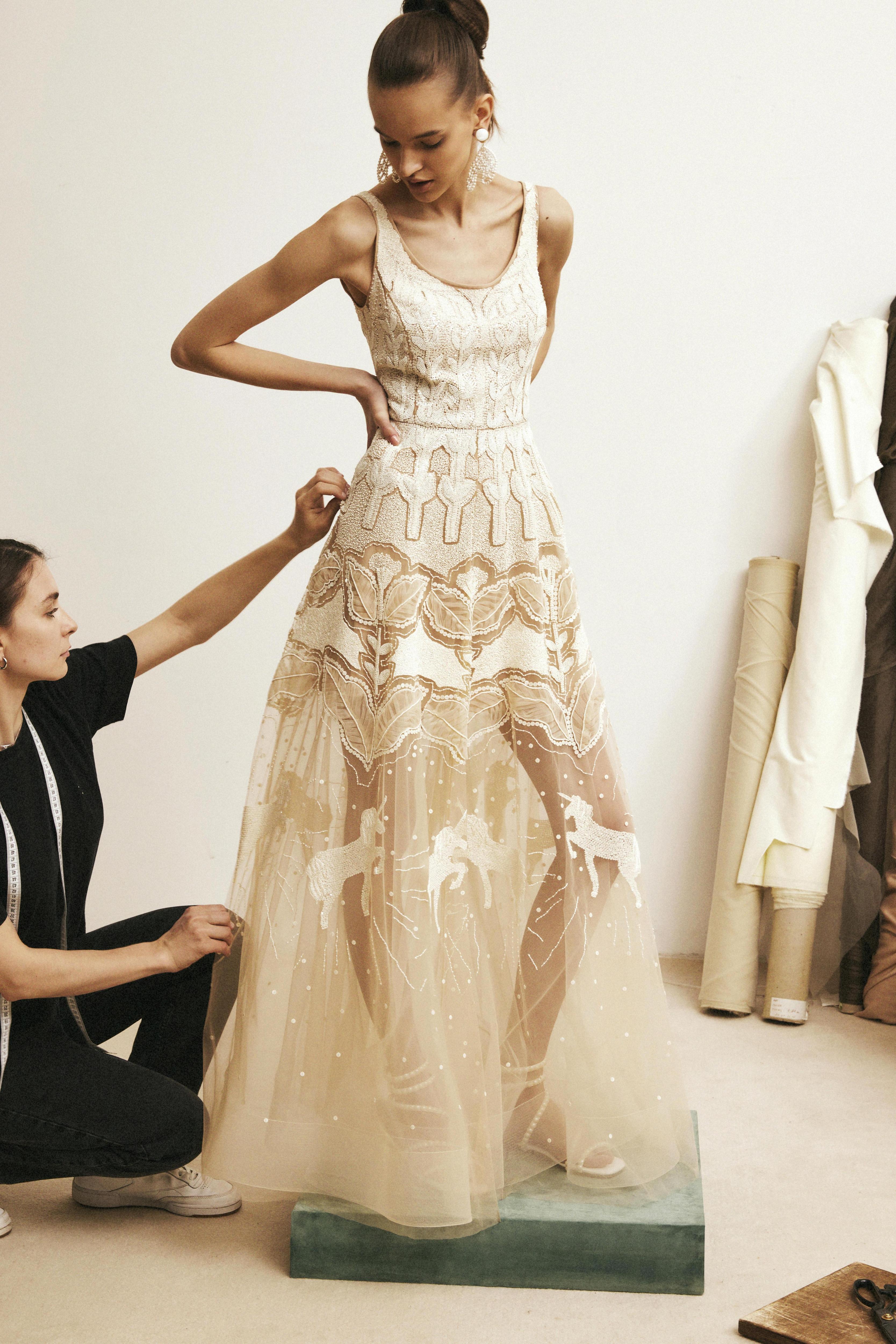 В ЦУМе также представлена деми-кутюрная коллекция Alena Akhmadullina: уникальные платья, каждое из которых имеет своё имя и номер. Они выполнены в сложнейшей технике вышивки люневильским крючком по сетке с использованием почеркового для бренда жемчуга, бисера, стекляруса, прозрачных пайеток и перьев. На каждое платье ушло до 100 часов ручной работы.