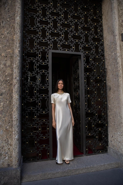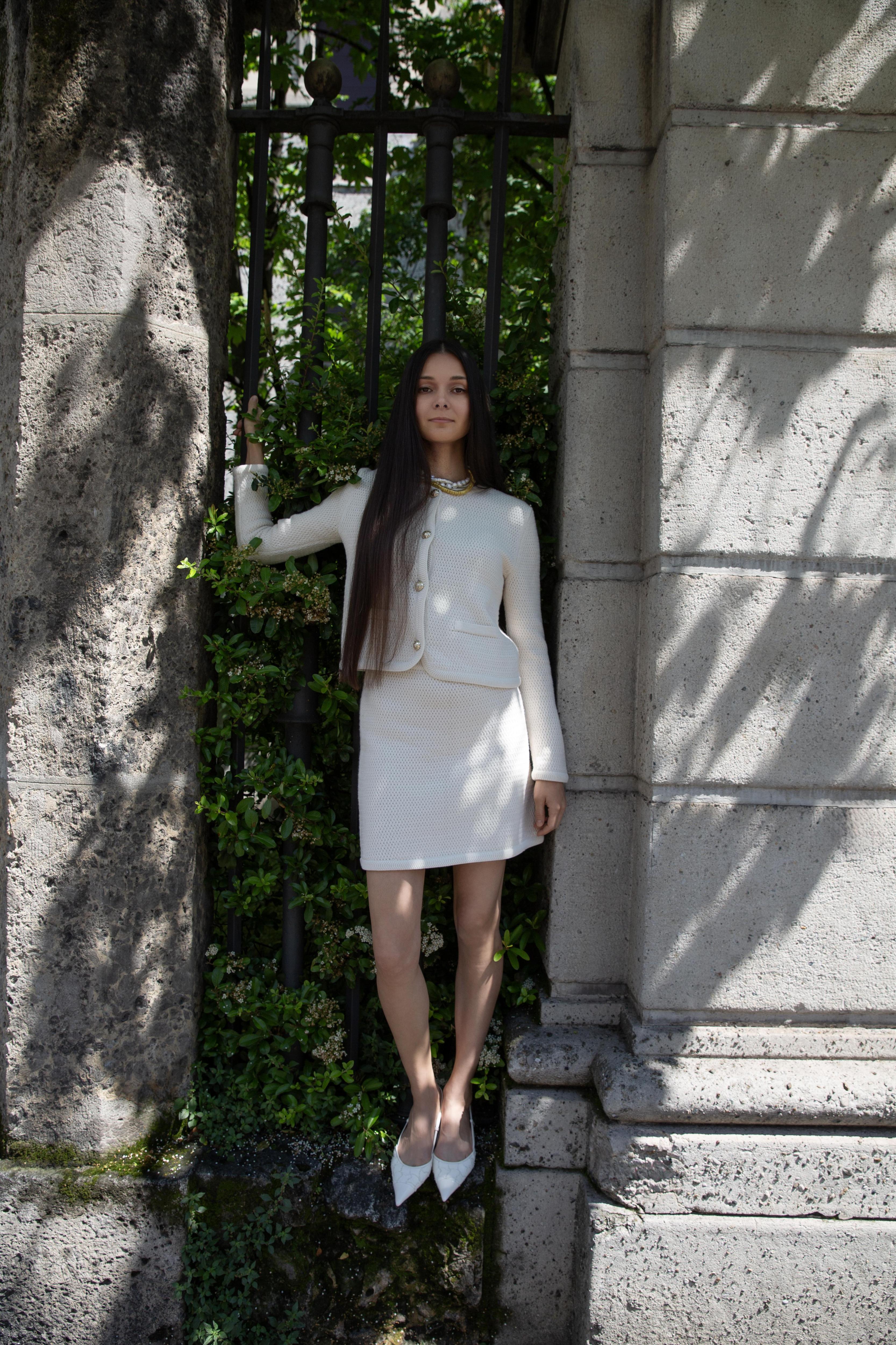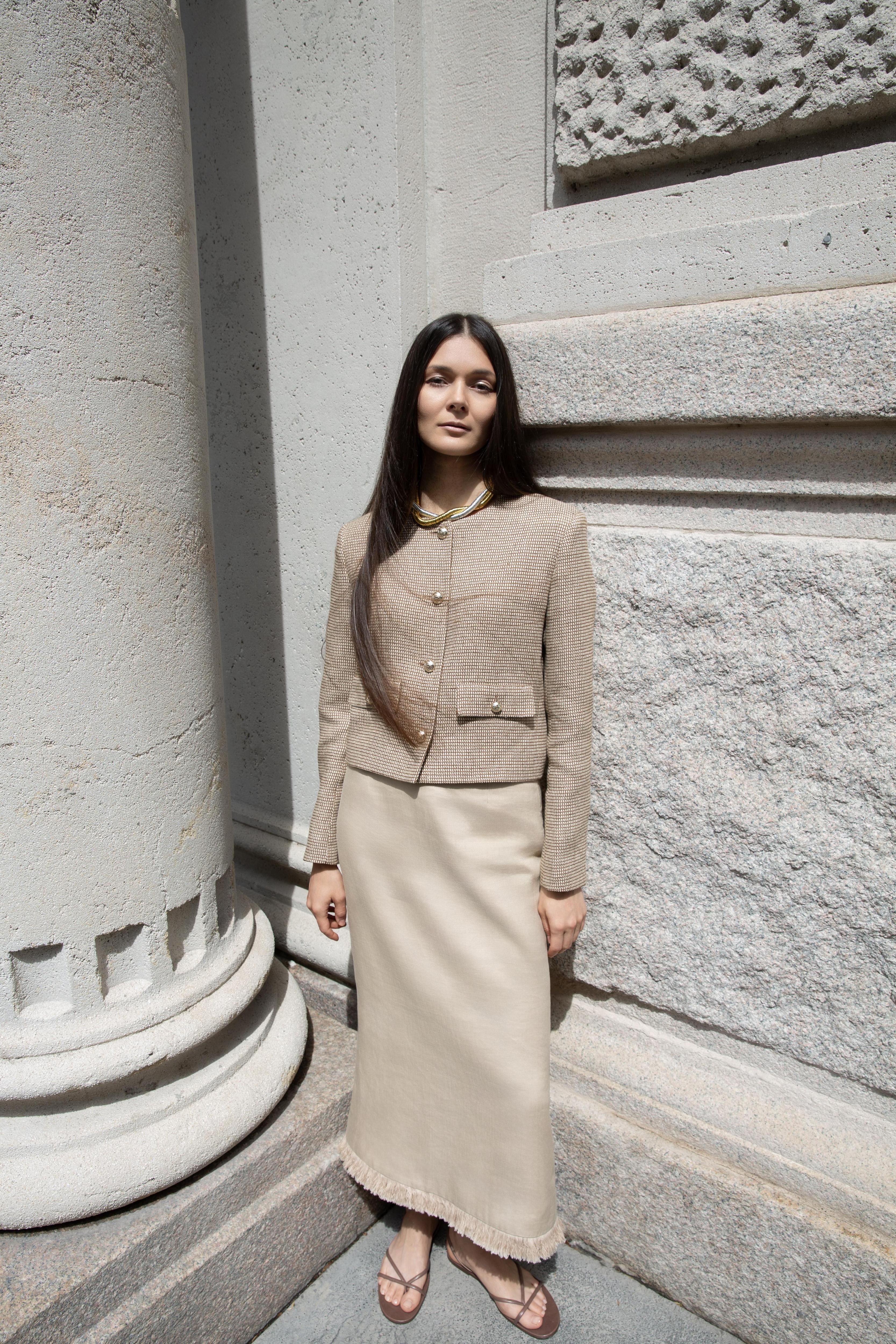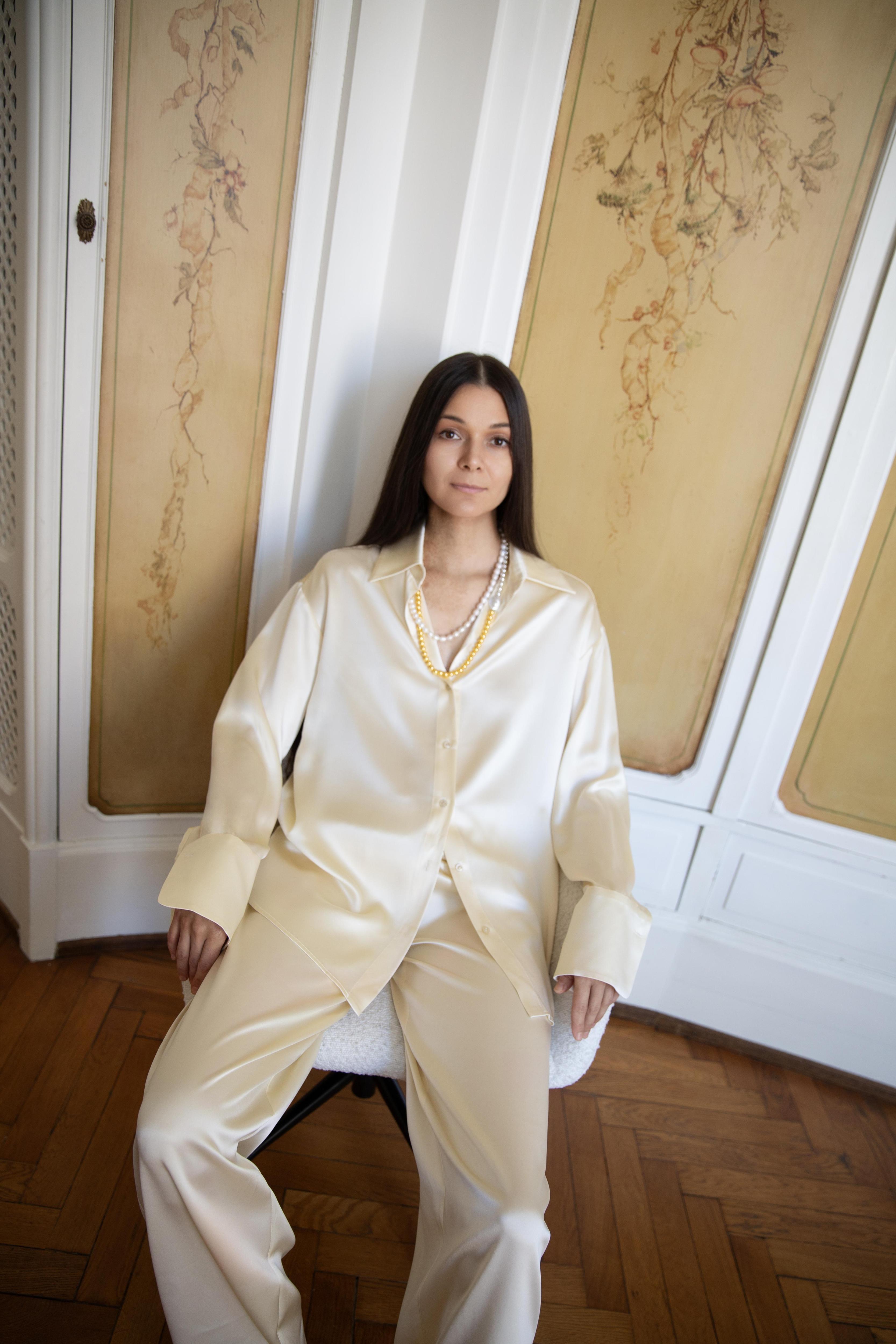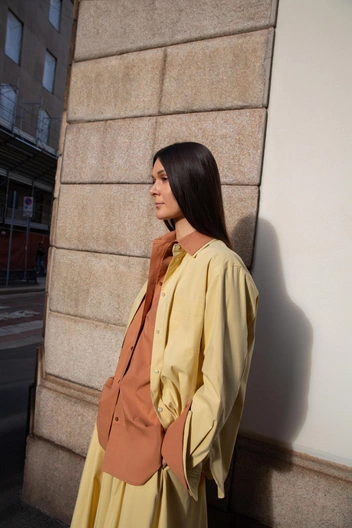 Особенное место в капсуле занимают модели из европейских тканей и пряжи. Комплект Annette выполнен из ткани, созданной для Ralph Lauren, а костюмы Brigitte — из итальянского хлопка. В палитру вошли молочный, кипенно-белый, цвет «сливочного масла» и приглушенные оттенки терракота — кофейный и «печеный желтый».