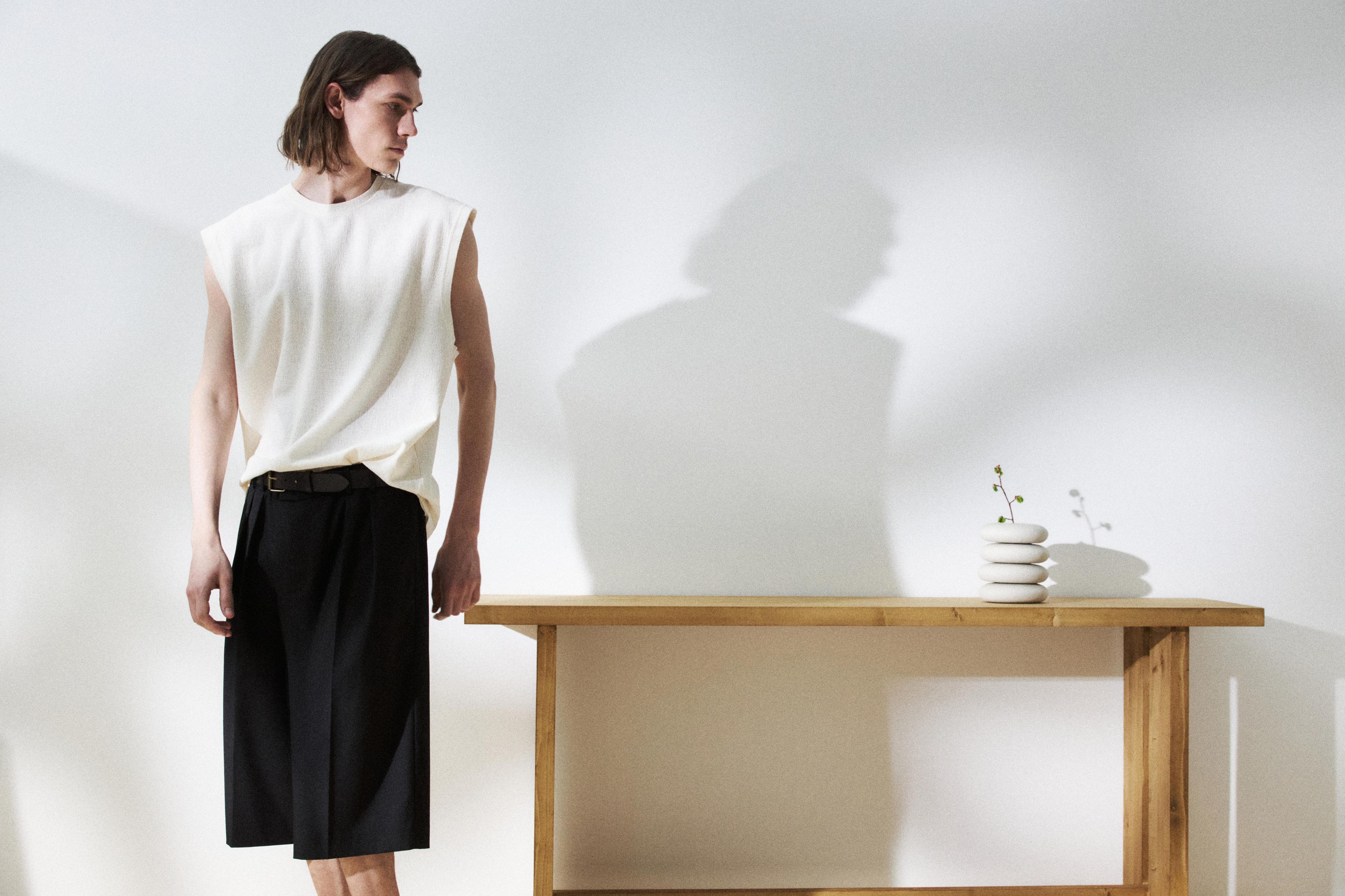 В новой мужской коллекции Pure Minimalism LIMÉ фокусируется на лаконичных комплектах с оверсайз силуэтами, тонким трикотажем и кожаными аксессуарами. Костюмы с шортами выполнены с акцентной цветочной вышивкой и принтами, топы и футболки сделаны из полупрозрачного материала. Куртка в стиле карго дополнит образы в прохладные дни, а комплект в пижамном стиле станет полноценным образом на каждый день. Все изделия свободно сидят по фигуре, не сковывают движений и сочетаются между собой. Основные цвета коллекции — черный, белый и бежевый. Стилисты LIMÉ предлагают разбавлять образы аксессуарами — ремнями и обувью. Идея для стайлинга: надеть сразу несколько кожаных ремней.