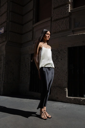 Present & Simple презентовал новую коллекцию Bella Italia. Основа капсулы — блейзеры, широкие брюки, скроенные на манер мужских, кардиганы с эффектом вязки крючком, а также летящие платья, блузы и юбки из струящегося итальянского шелка. В теплом сезоне фирменные костюмы-тройки и укороченные кардиганы «переоделись» в летние легкие материалы — лен, хлопок.