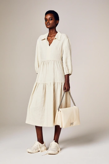 Развивая направление устойчивой моды, United Colors of Benetton ежегодно создает коллекцию из натурального и смесового льна. Материал хорошо отводит влагу, в нем не жарко, и он полностью пригоден для вторичной переработки, а смотрится он при этом элегантно и благородно. Айтемы женской коллекции: одноборотный приталенный жакет, платье свободного кроя, комбинезон, рубашка с приспущенным рукавом, блузка с v-образным вырезом, расклешенная миди-юбка, брюки-карго и шорты с карманами.