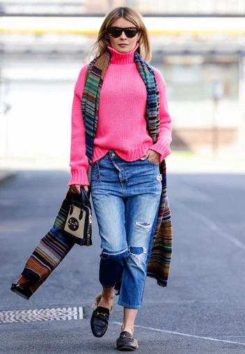 С массивными шарфами нужно быть максимально внимательными. Если у вас фигура «перевернутый треугольник», не рекомендую наматывать большие шарфы на шею, особенно, если надеваете зауженные брюки или юбку-карандаш. Не усиливайте акцент в верхней части фигуры. Для вас актуальны более утонченные модели шарфов. Шарф-оверсайз подойдет девушке с типом фигуры «груша».
