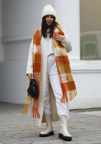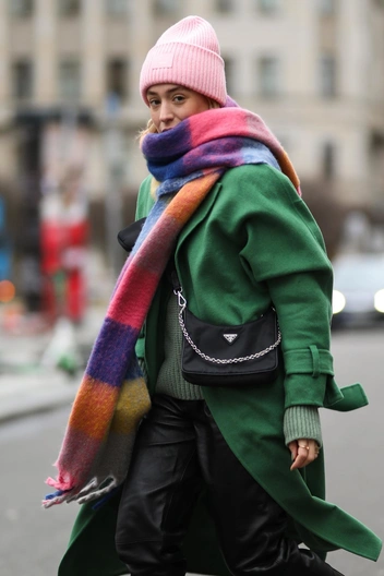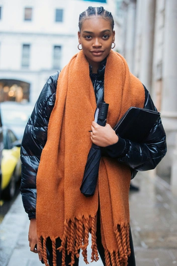 В тренде объемные и мега-объемные шарфы. Главный нюанс — фактура шарфа должна быть довольно плотной. Это может быть шерсть, кашемир или фактурная вязка. Чем они огромнее, тем больше вариантов драпировки: