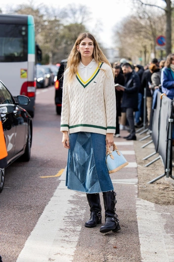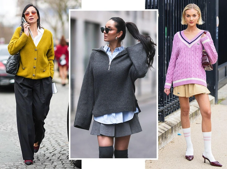 Поскольку такой свитер — основа стиля преппи, сочетайте его с белой рубашкой, джинсами, пиджаком и лоферами. А кто сказал, что образ выпускницы не может повторить взрослая женщина?
