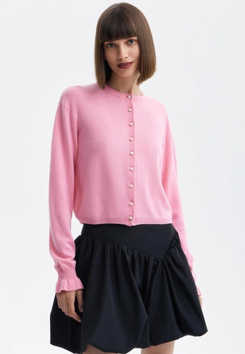 Этот тренд для нас — не новость, но именно классические укороченные кардиганы с рядом маленьких пуговок в осенних оттенках станут базой ваших теплых аутфитов. Используйте в этом сезоне прием многослойности и стилизуйте их с пиджаками, надевайте поверх лонгсливов и водолазок. Играйте также с фактурами: сочетайте трикотажный кардиган с атласной юбкой или кожаными брюками.