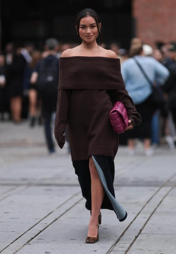 Уже второй сезон романтичности нашим образам придают чувственные лонгсливы, свитеры и платья с открытыми плечами. Вырез до ключиц и мягкая ткань уравновешивают друг друга, создавая комфортный и при этом шикарный аутфит. Поскольку ваша шея открыта, не утяжеляйте ее украшениями — пусть весь мир видит ваши острые ключицы (читайте также: На любой случай: 11 моделей верхней одежды, которые никогда не выходят из моды).