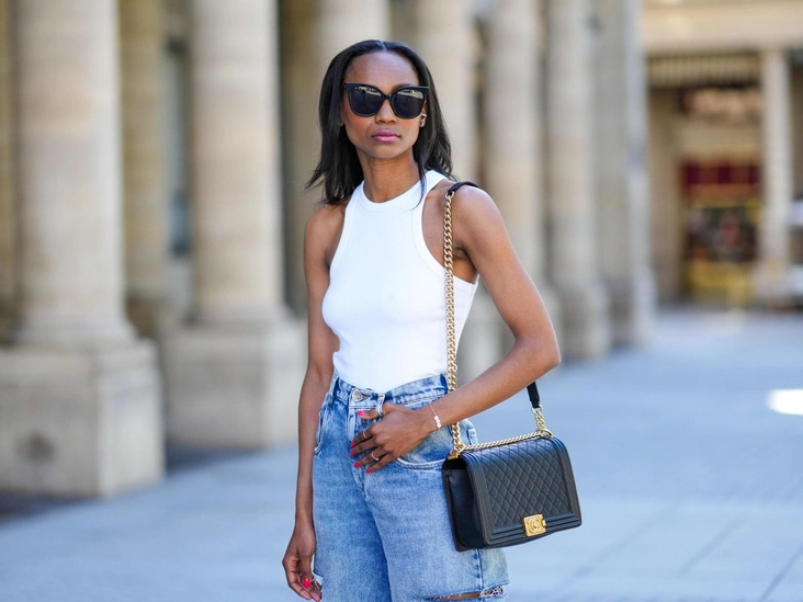 Топ-бандо — это предмет одежды без бретелей, напоминающий две полосы ткани, сшитых по бокам. Впрочем, так оно и есть. Топ отличается особой женственностью и элегантностью, ведь он открывает ключицы и шею, показывая одни из самых красивых и изящных частей нашего тела. Предлагаем их оставлять открытыми и дополнять бандо лишь крупными серьгами и широкими браслетами (читайте также: Что такое стиль Y2K: тренд нулевых, актуальный и сегодня).