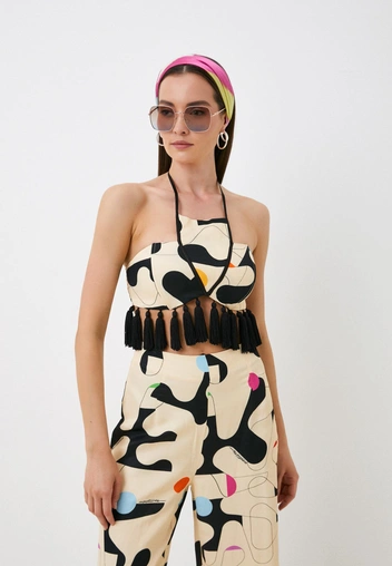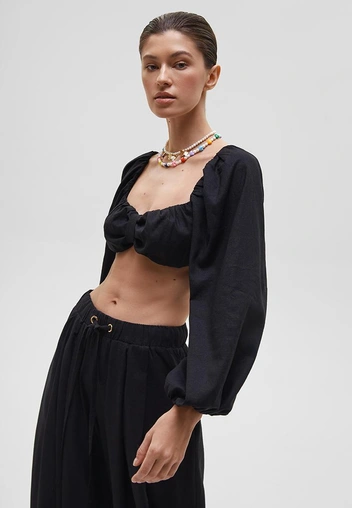 Идеальная длина на лето — короткая. Это повод показать не только, что вы в тренде, но и готовы к отпускному сезону. Укороченный топ необязательно должен быть трикотажным и вязаным, как мы привыкли видеть его в последнее время. Экспериментируйте и ищите новые формы — с длинными рукавами, завязками, сборкой, бантами. Его легко стилизовать в гардеробе, так как длина позволяет носить топ с самыми разными брюками, шортами и юбками.