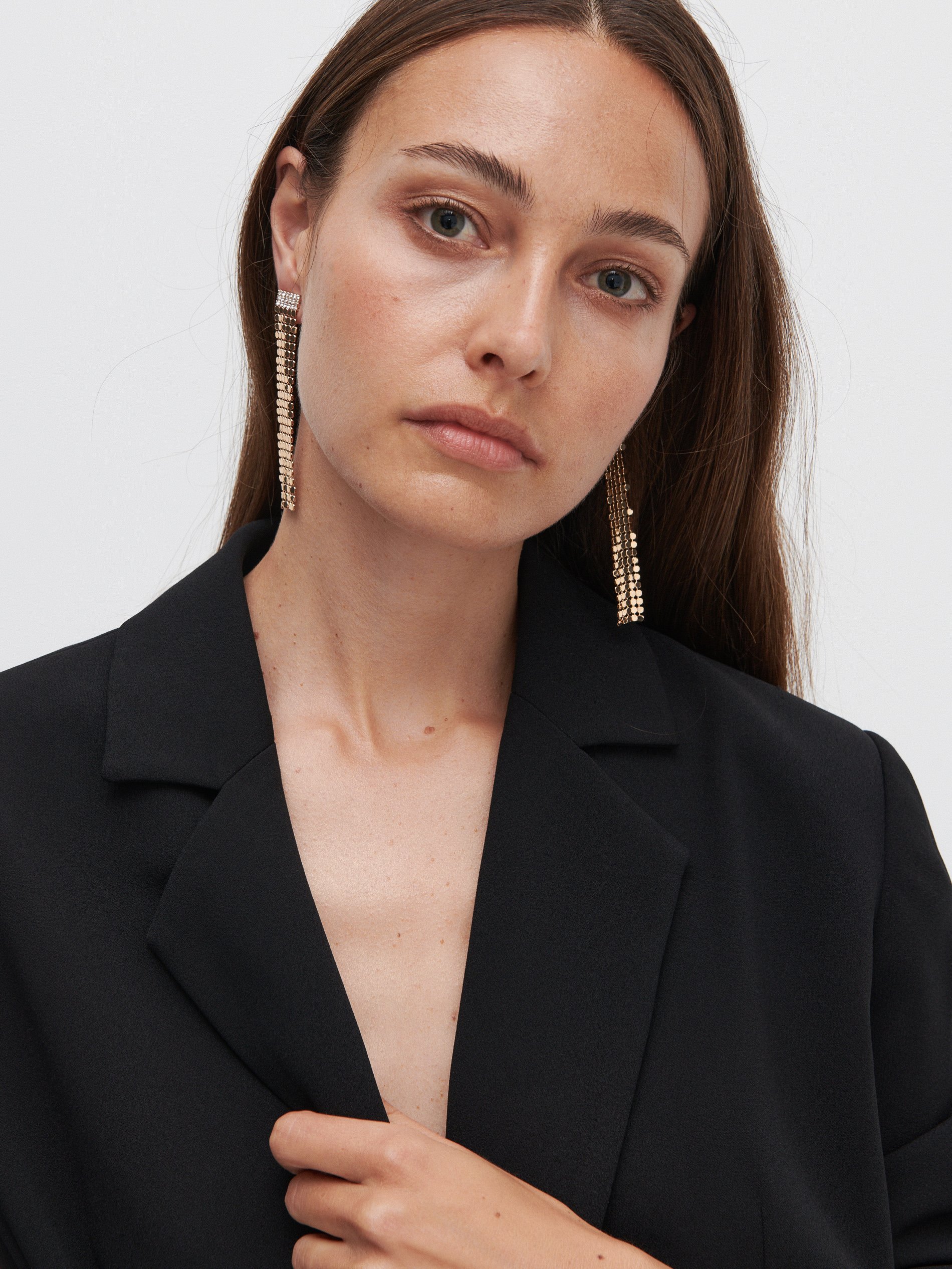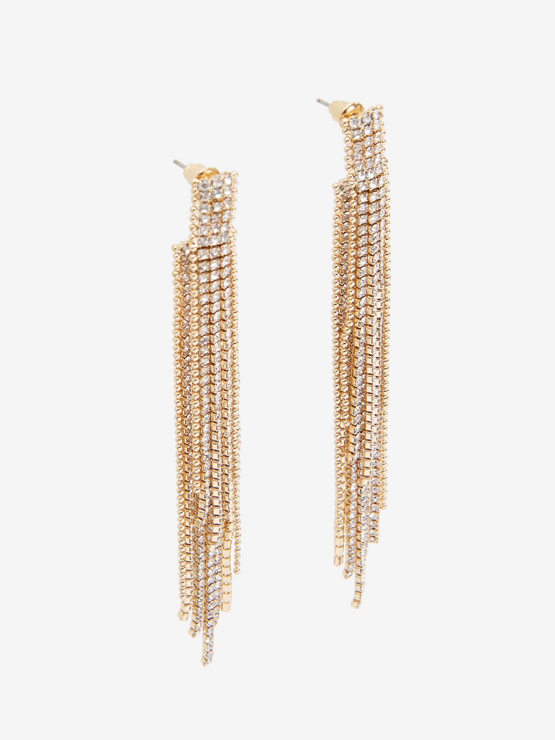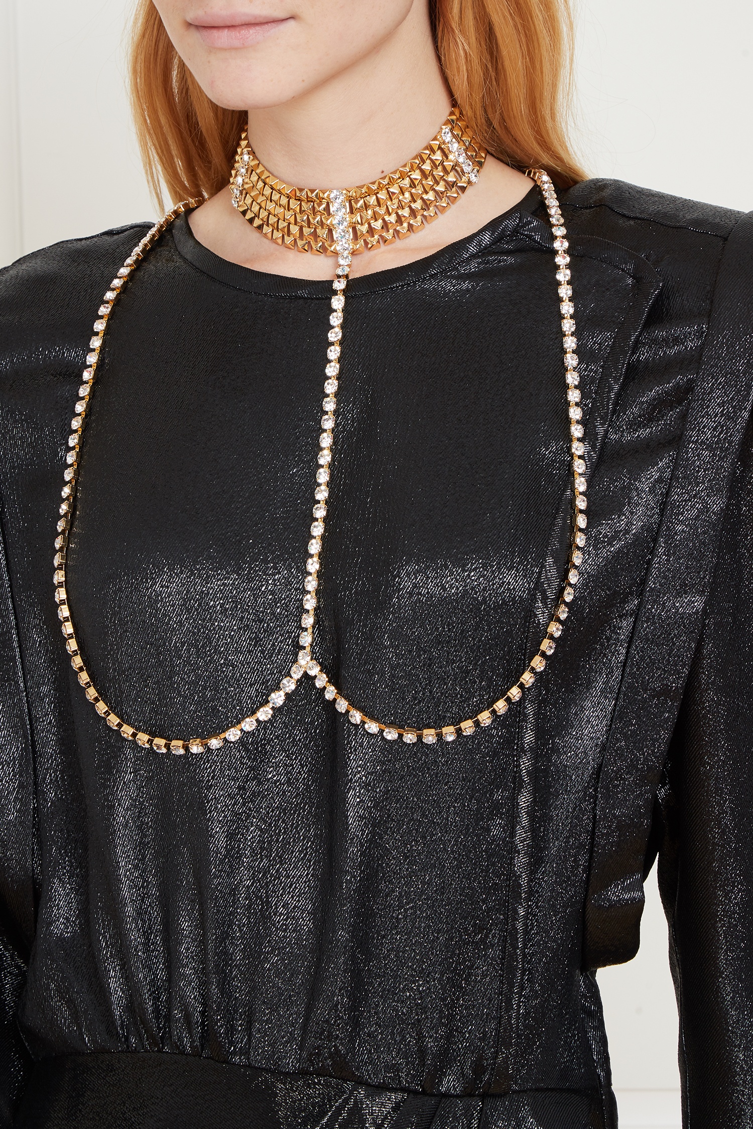 Серьги-шандельеры с длинными цепочками из сверкающих камней уже давно знакомы нам и теперь перешли в разряд классики. Но в этом сезоне стразы бьют все рекорды популярности: в новых коллекциях дизайнеры щедро осыпают сверкающими камнями все трендовые украшения этого сезона. Присмотрите классические переливающиеся чокеры или более необычный вариант — необычные топы со стразами или платья из сияющих цепочек, которые стирают границы между украшениями и одеждой.