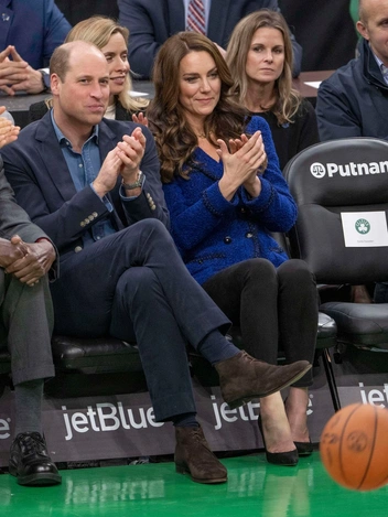 Вечером того же дня принц и принцесса отправились на игру НБА между «Бостон Селтикс» и «Майами Хит» в TD Garden. В Сети распространилось видео, на котором Уильям ведет Кейт через ликующую толпу во время игры в Бостоне. Титулованные особы смотрели баскетбол вместе с бывшей баскетболисткой из Гарварда и губернатором штата Массачусетс Маурой Хили, а позже встретились с членами семьи «Селтикс» и фондом Boston Celtics Shamrock Foundation. Но больше всего королевских поклонников умилило то, как Уильям нежно положил руку на спину Кейт, провожая ее к их местам. На принцессе был один из ее недавних нарядов — синий блейзер Chanel дизайна 1995 из смеси акрила, нейлона, хлопка и шерсти. В нем Кейт уже видели в октябре.