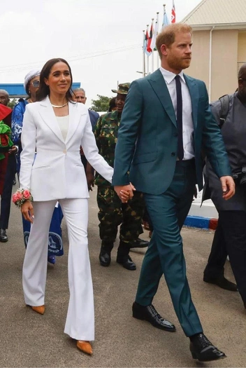 Май начался с прекрасных новостей для поклонников Меган и Гарри — ведь их любимчики наконец не просто появились на публике, а еще и отправились в международный тур. Все ради «Игр непобежденных», которые принц в 2025 году хочет провести именно в Нигерии. Похоже, что Гарри взял в оборот любимый прием своих родственников — если хочешь расположить к себе кого-то, используй для этого жену. Так бывает и с принцем Уильямом, который ходит в идентичных костюмах — зато Кейт покоряет всех и вся платьями Alexander McQueen и Jenny Packham. Вот теперь и Гарри присоединился к «команде» старшего брата и отца и весь тур ходил в одинаковых лоферах Loro Piana (зато Меган показала 8 потрясающих луков за три дня).