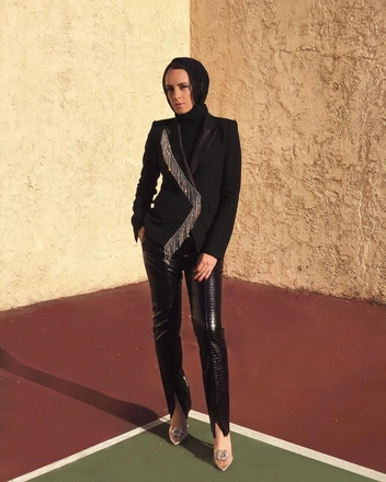 Вокруг арабской моды кружит немало стереотипов — мол, мусульманки, в основном, носят длинные балахоны, полностью скрывающие фигуру, и игнорируют тенденции. Однако Марва доказывает, что все это — устаревшие клише. И облачается в латексные брюки, пиджаки с мужского плеча с декором и красит губы ярко-алой помадой.