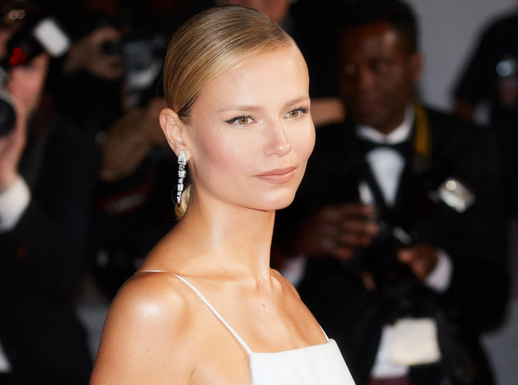 Модель Наташа Поли в очередной раз подтвердила, что лучший цвет платья для фотосессии на красной ковровой дорожке в темное время суток – это белый. В сшитом специально для нее платье Boss девушка была самым ярким впечатлением под темным небом Канн.