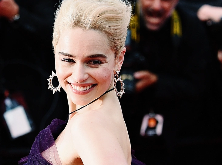 Эмилия Кларк, сыгравшая роль Дейенерис Таргариен в сериале «Игра престолов» (Game of Thrones), в новой части звездной киноэпопеи «Звездные войны» (Star Wars) превратилась в красавицу Ки’Ру. На красной дорожке перед премьерой картины Эмилия появилась в изящном фиолетовом платье Dior. Открытые плечи вечернего туалета фигуру актрисы делали еще более хрупкой и миниатюрной, но главным украшением всего образа британской кинозвезды стала ее сияющая улыбка.